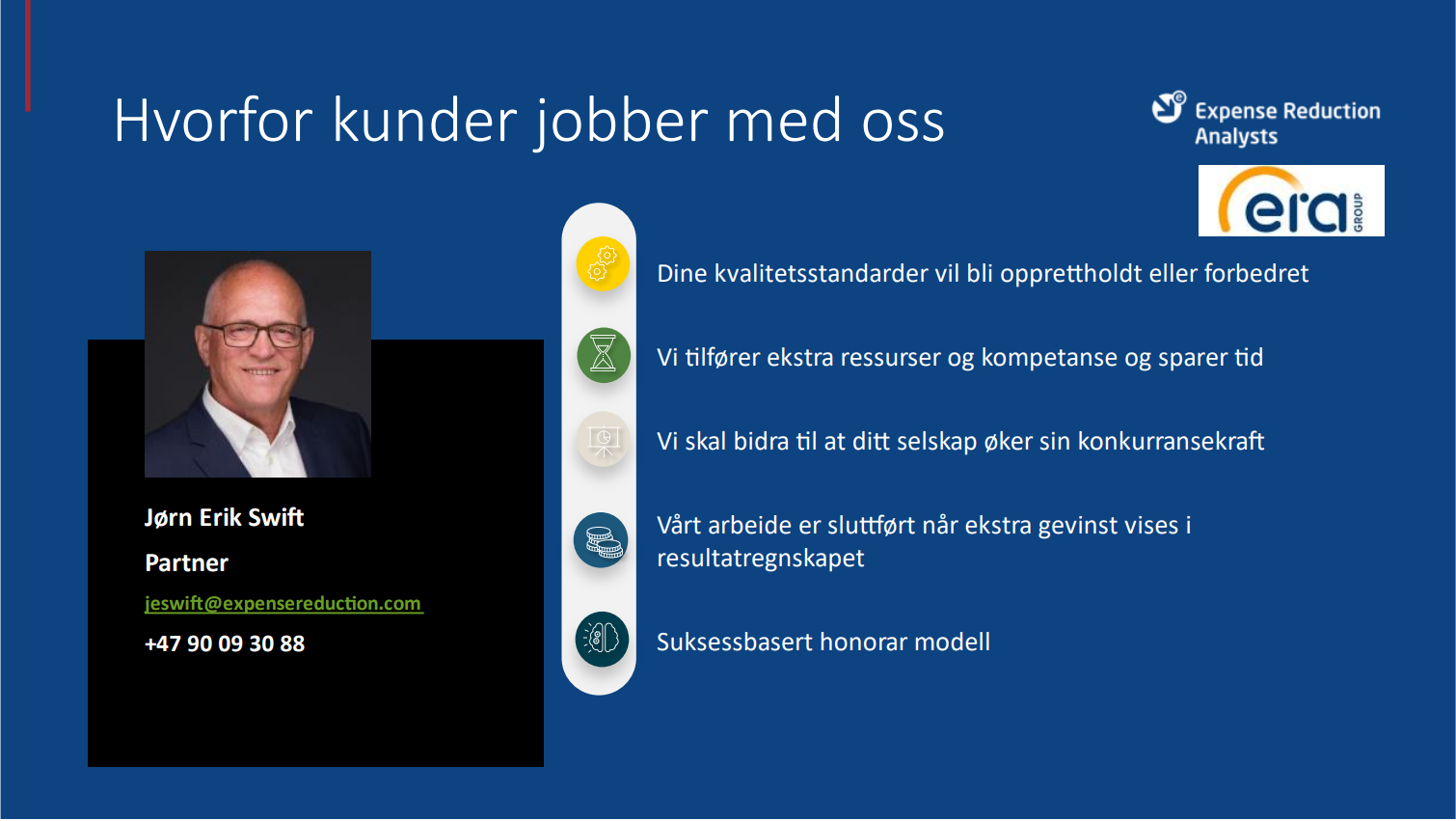 Våre spesialister har opparbeidet seg erfaring og ekspertise gjennom mange år på seniornivå innen mange kostnadskategorier. Denne erfaringen stilles til rådighet til bedrifter om hvordan de kan optimalisere sine leverandørrelasjoner og øke sin lønnsomhet.