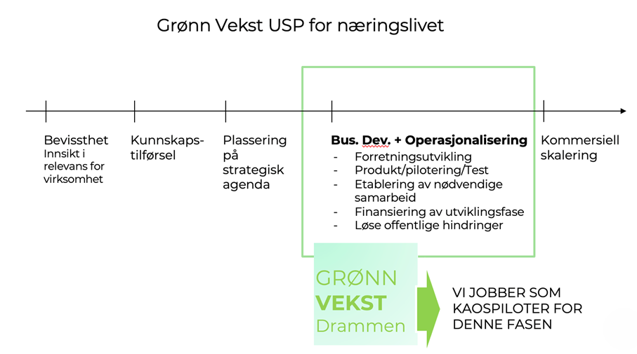 Da Drammen kommunes satte seg mål om å bli Norges grønneste kommune plasserte de sine mål midt i kjernen av den grønne omstillingen, der alle økosystemets parter har behov for samarbeid for å nå sine mål. Diskusjonen mellom økosystemets parter om hvordan Drammen skal realisere disse målene kom raskt opp: Hvordan de enkelte aktørene ser sine utviklingsmuligheter som del av realiseringen – hvordan man igjennom samarbeid kan etablere vinn-vinn mellom næringsliv og det offentlige.